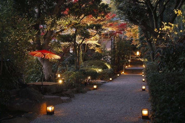 鶴巻温泉駅から徒歩5分、敷地内に一歩足を踏み入れると一万坪の緑豊かな庭園。非日常の空間をお楽しみください