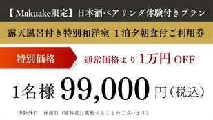 【日本酒ペアリング付き】露天風呂付き特別和洋室1泊夕朝食付き宿泊利用券
