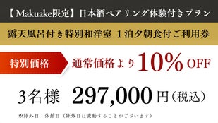 【日本酒ペアリング付き】露天風呂付き特別和洋室1泊夕朝食付き3名様分宿泊利用券