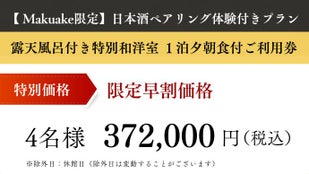 【日本酒ペアリング付き】露天風呂付き特別和洋室1泊夕朝食付き4名様分宿泊利用券