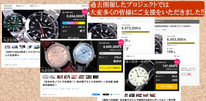 過去のプロジェクトでは予想を超える多くの皆様からの応援購入をいただきまして誠にありがとうございました。集まった資金を元に、海外サイトの開設・自社組み立て工房の設置など公約しておりました通り順調に腕時計ブランドとして成長させることが出来ました。今後さらなるブランド価値の向上に努めます。