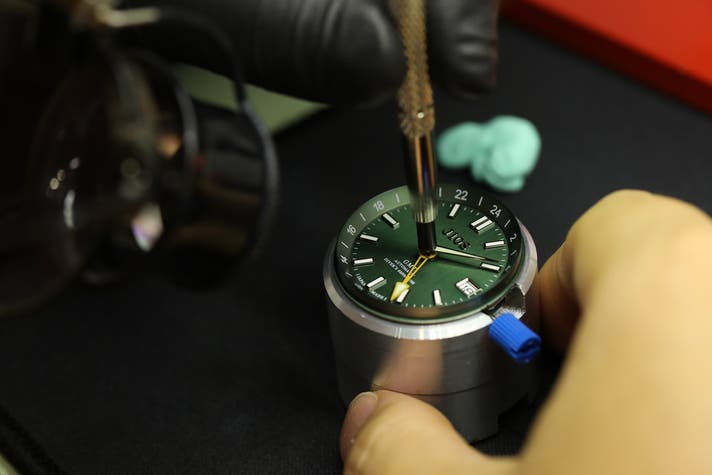 1本1本職人の手によって、丁寧に組み立てられています。JIOSの2ndモデル「GMT DIVER'S 104」は京都にある工房によって組み立ての最終行程を全て行っています。日本のモノづくりにこだわるJIOSでは、JAPANクオリティを求めるため弊社の基準を満たした提携工房へ腕時計の最終工程である組み立てを依頼しています。アフターフォローに関しても石山~京都は電車で3駅程度の距離のため迅速な対応が可能となります。末長く安心してお使い頂くことが可能となっています。
