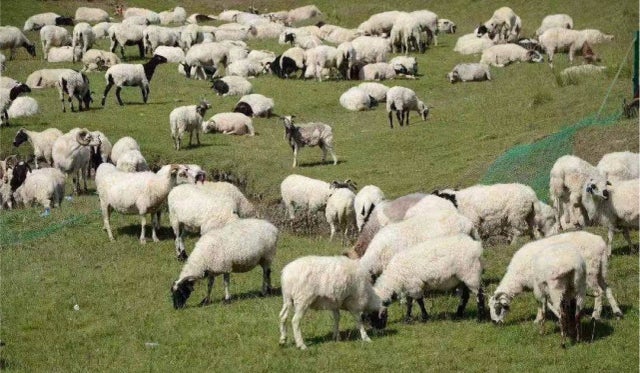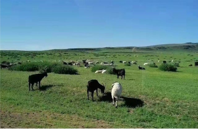内モンゴル工場でのカシミヤ山羊の放牧風景