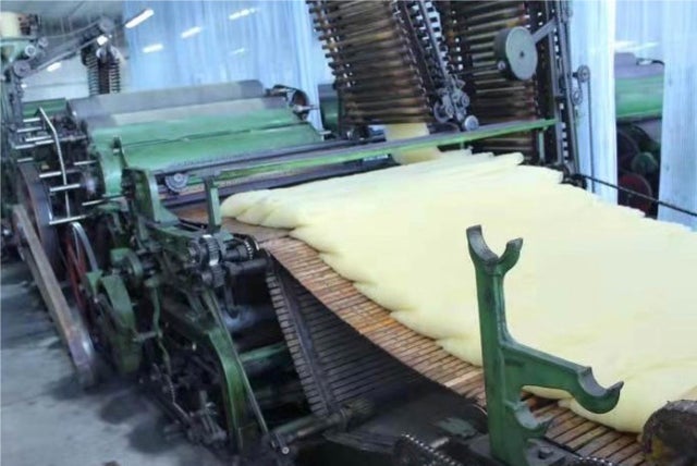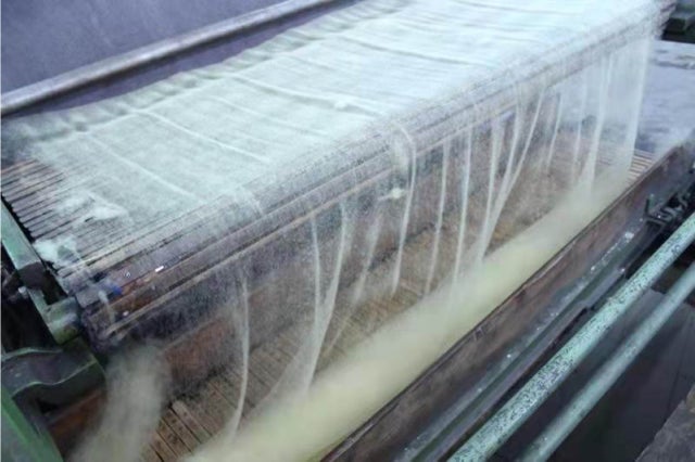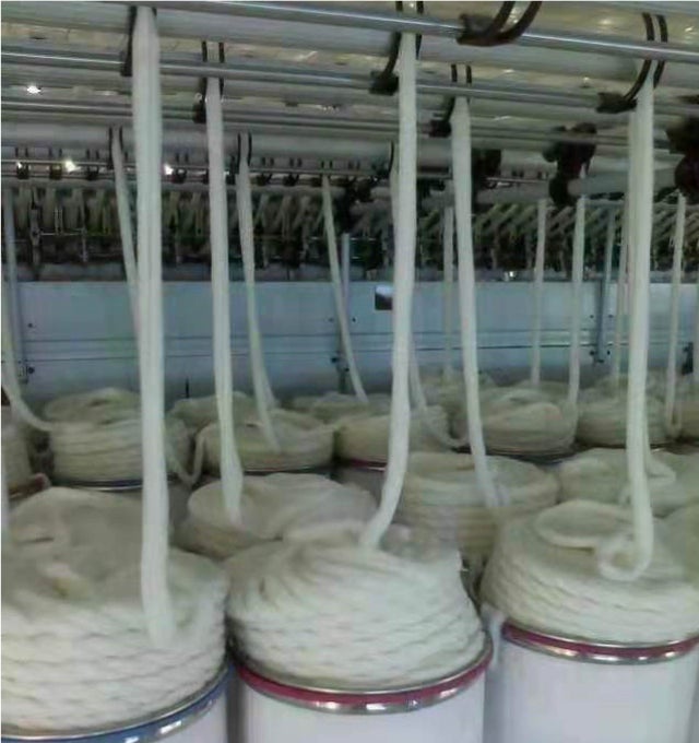 内モンゴルの紡績工場。原毛の汚れを綺麗に処理中