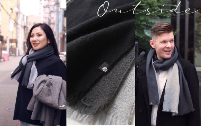 30年程前にウール素材で生産致しました3枚織りトリプルマフラーをカシミヤ 100%の素材で復活する事に致しました。