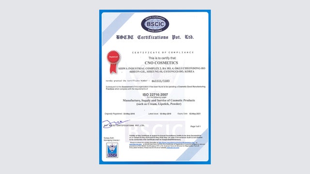 本製品は、化粧品の製造に関する品質・安全性に関する国際規格「ISO 22716:2007」を取得している製造工場で作られています。