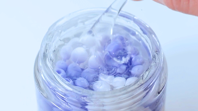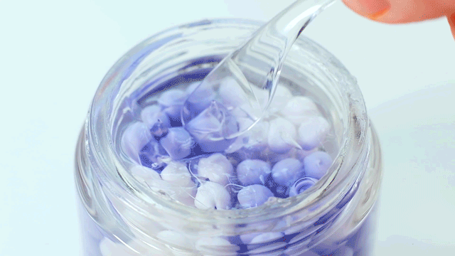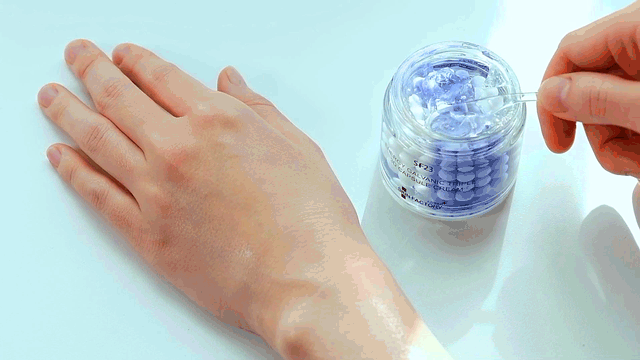 シワの悩みがある所には、パープルのカプセル。水分保湿が必要な所には、ホワイトカプセル&透明ジェルをのせて使ってみてください。