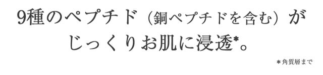 本製品は、銅ペプチドを含む9種類のペプチド×100種類以上の美容成分を配合。