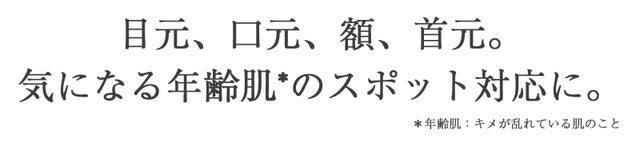 目元、口元、首、額などの年齢の出るスポットをなめらかにケアします。
