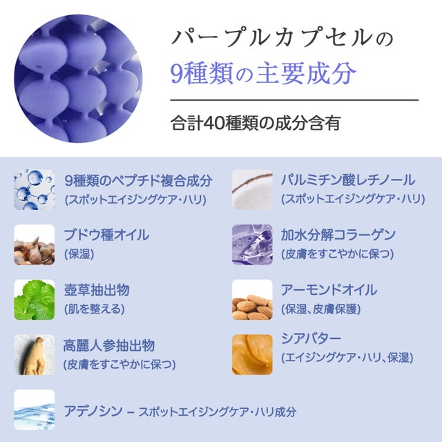 パープルカプセルは、目元や額、ほうれい線など「スポットケア」に!