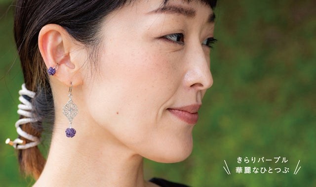 繊細なレースパーツと水引珠の組み合わせは、つけるだけで顔回り印象をパッと華やかに演出してくれます。