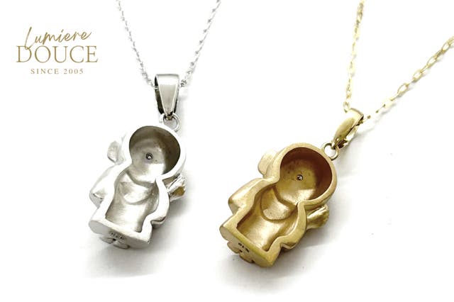 - 嬉聞耳地蔵ネックレスは、使用しない時もお守りの置物として自立するように作られています