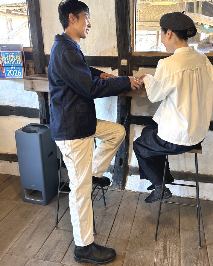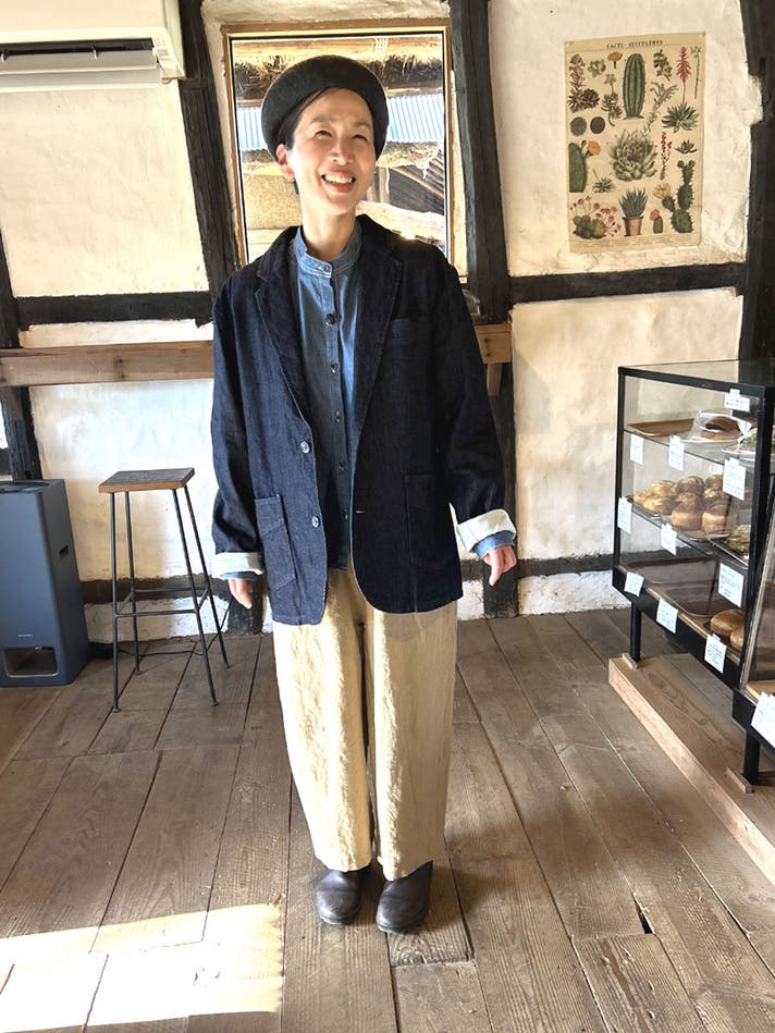 井原産デニム生地ならではの、柔らかく奥行きのある色合いが魅力。柔らかさと凛とした佇まいを兼ね備えているのも特徴。