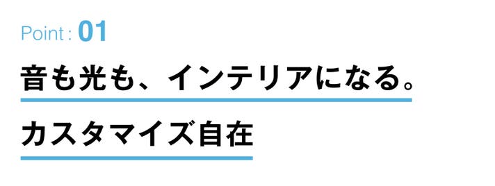 音楽のリズムと連動した多彩なRGBライティングが、いつもの部屋を、あなたの“今”にピッタリなパーソナル空間に。