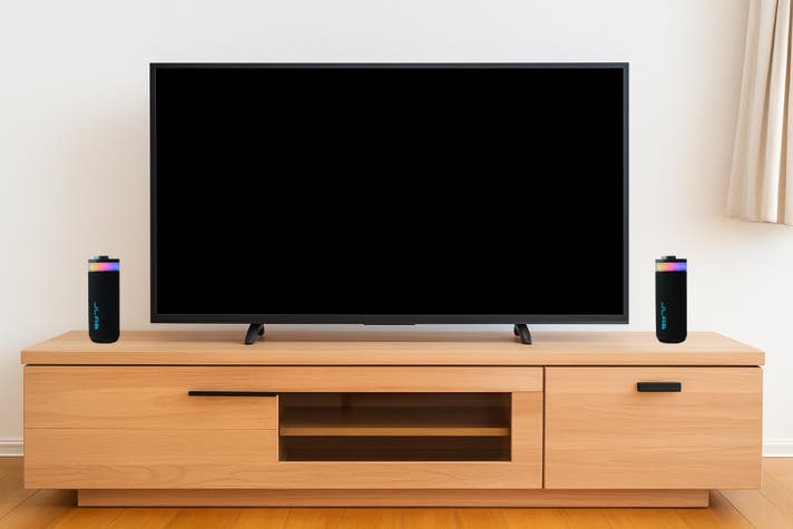 アプリから2台のスピーカーを左右のチャンネルに設定することで、パワフルな2チャンネルステレオシステムを構築。