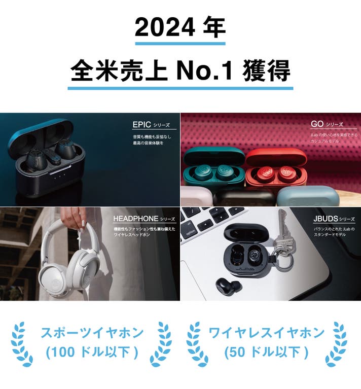 ※JLab Audioは、 2024年に米国で50ドル以下の完全ワイヤレス製品で第1位。