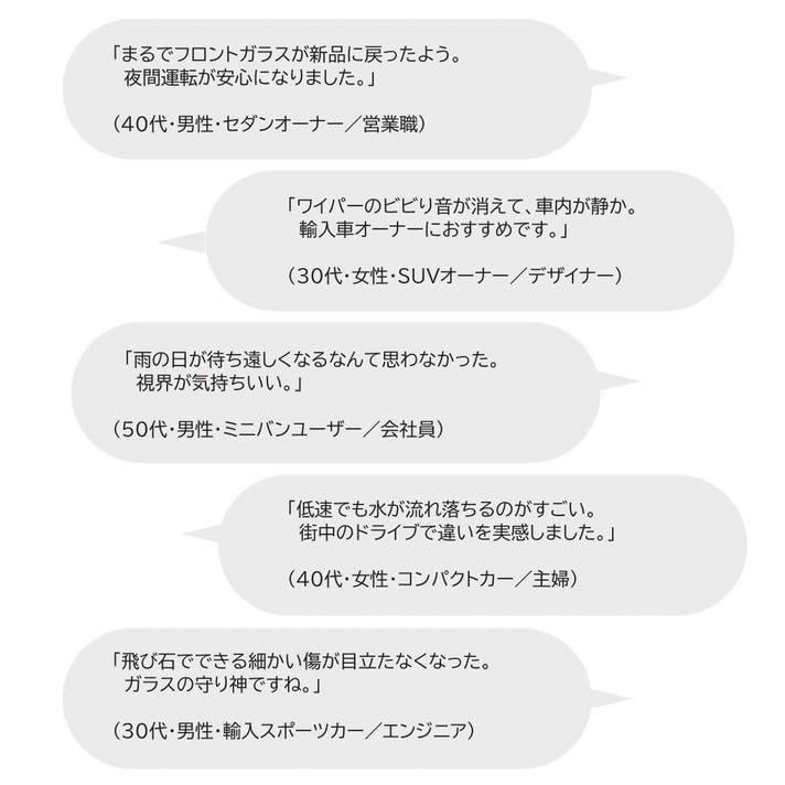 • 対応部位:フロント/サイド/リアガラス、ドアミラー、サンルーフ