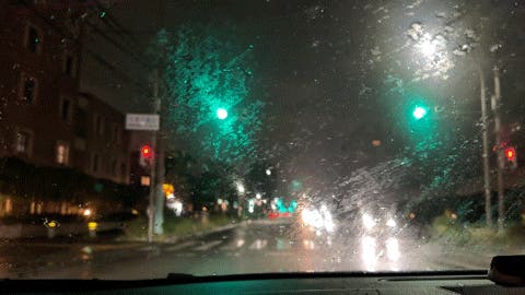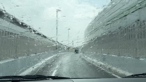 街中を走行中、水滴が走行風で一瞬にして消える。