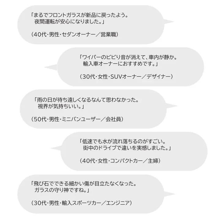 • 対応部位:フロント/サイド/リアガラス、ドアミラー、サンルーフ