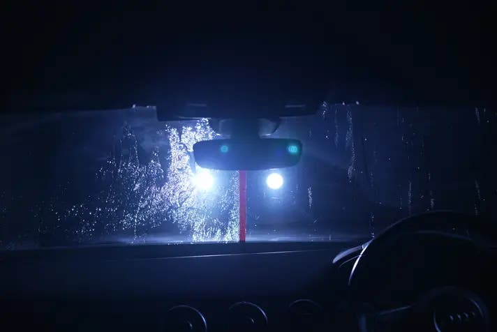 ・夜間のライトで乱反射する視界