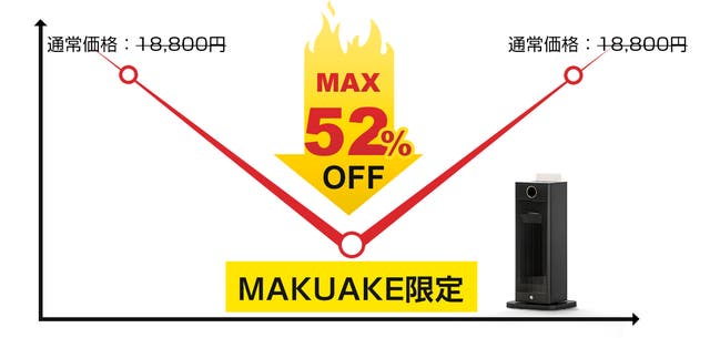 「Makuake(マクアケ)」は、実行者の想いを応援購入によって実現するアタラシイものやサービスのプラットフォームです。このページは、 プロダクトカテゴリの 「速暖!寒い冬は心地よい湿度で快適に!人感センサー&加湿機能付きセラミックヒーター」プロジェクト詳細ページです。