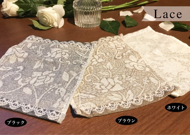 ※レースとローズの2柄3色ずつ、計6枚が入った、洗い替えで使えるマスクのセット組み商品になります。