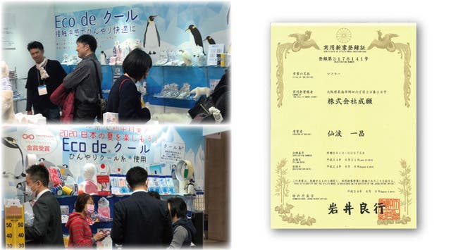 このクール糸を使った商品である【Eco de ®クール】シリーズは、多方面で評価され、タオルの組織にこの素材を織り込む技術は実用新案を取得した成願の開発技術です。