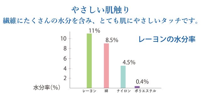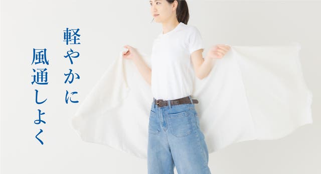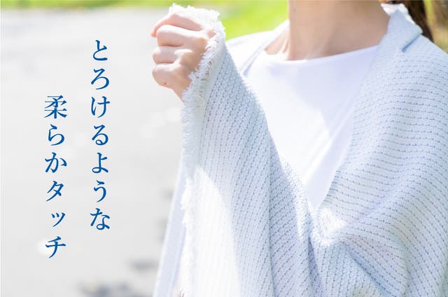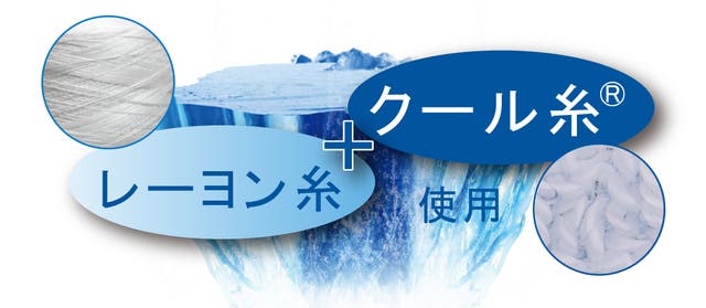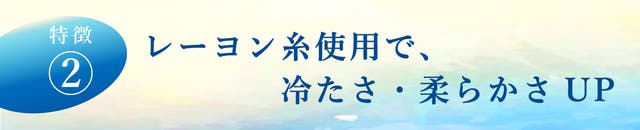 レーヨンを織り込むことで、素肌にあたってもチクチクせず、一度使うと手放せない心地よさ。接触冷感の肌触りのよい生地に織り上げました。