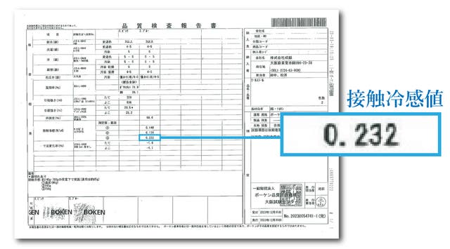冷感度試験結果【出典:一般財団法人 ボーケン品質評価機構】