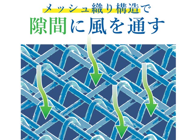 特殊なメッシュ織り構造により、熱や湿気をため込まず首周りを涼しく保ちます。