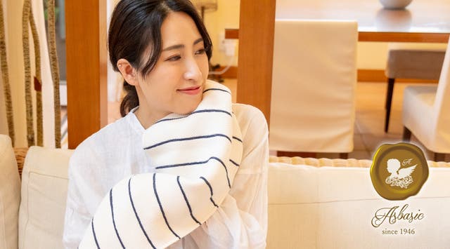特筆すべきなのは、編み物のようなやさしげな素材感と、特殊な糸による高い機能性です。吸水性・速乾性がよく、たっぷりとしたボリューム感。贅沢な使い心地でありながらも驚くほど軽く、機能面にも優れています。