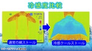 実験で水に濡らした結果、この通り一目瞭然。見てわかる驚きの冷感効果です。