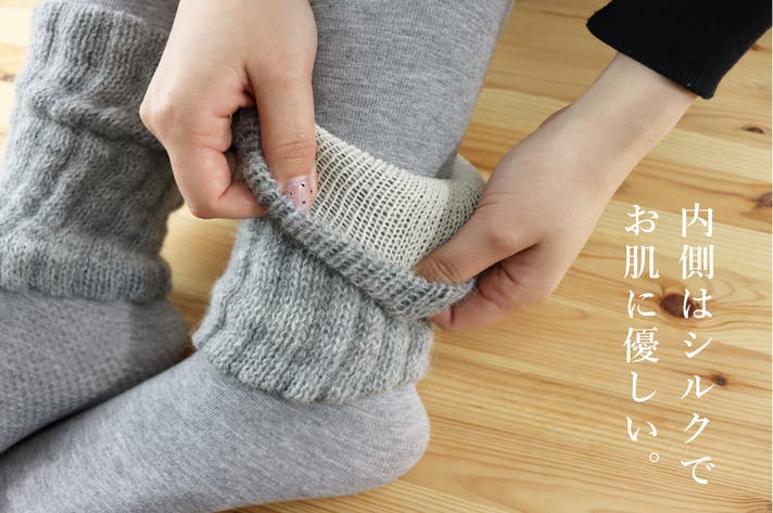 - ふんわ~り二重編みのニット素材で足にフィット!足に馴染み、ちくちく感を感じさせない!