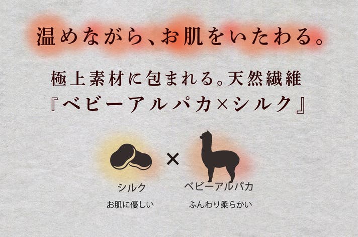 - スフレのような極上素材に包まれる。天然繊維『ベビーアルパカ×シルク』で快適温活