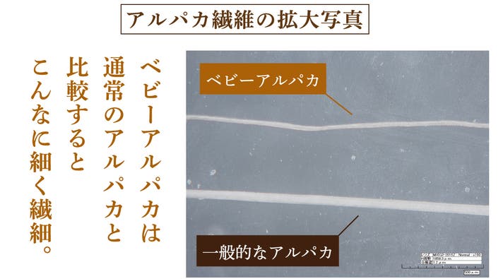 - アルパカの本場、ペルーから採れた、希少価値が高いベビーアルパカを贅沢に使用