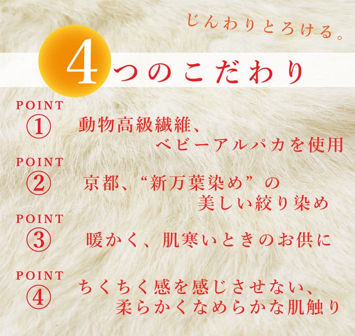 サッと巻けてすぐにぽかぽか!高級アルパカ糸を使用して贅沢に織り上げ、うっとりするなめらかな肌ざわりに。