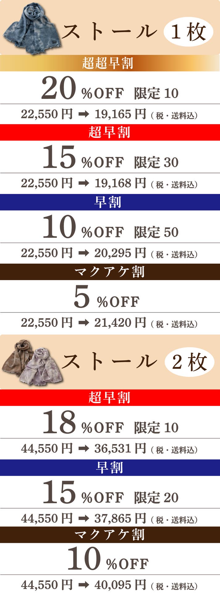 お買い得な超超早割、超早割もご用意しております。いずれも他では出せない異例の割引価格です。ご自宅用にはもちろん、贈り物としてもおすすめです。
