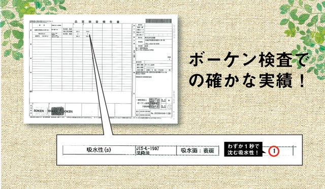 ※吸水性試験結果【出典:一般財団法人 ボーケン品質評価機構】