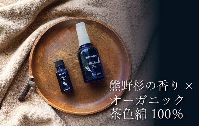 今回のプロジェクトのオーガニックタオルと、熊野杉のアロマオイルは、