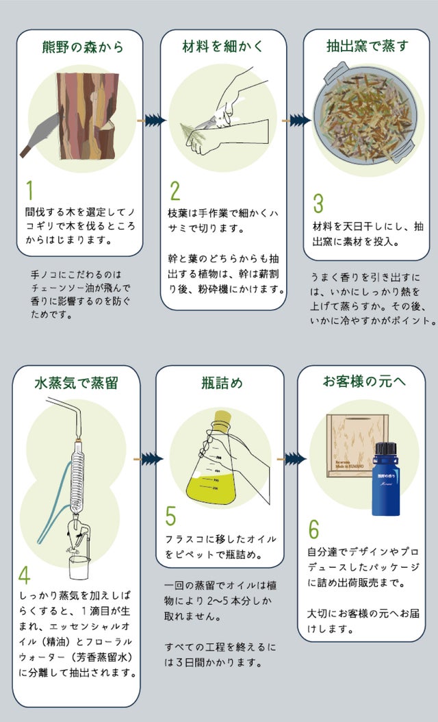 世界遺産熊野の地から「香り」を通して熊野を発信していくために、和歌山・熊野の木材をつかった商品作りに勤しんでいます。
