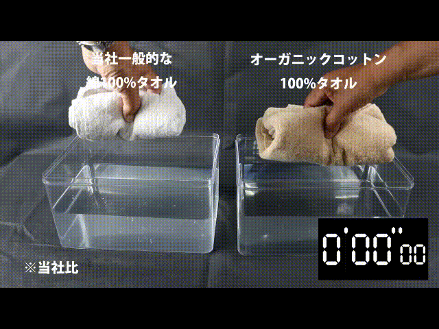 オーガニック100%のタオルは、当社の通常の綿100%のタオルと比べても、抜群の吸水力をもっています。