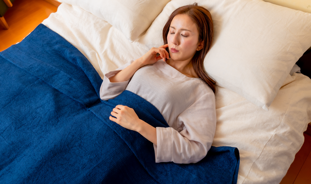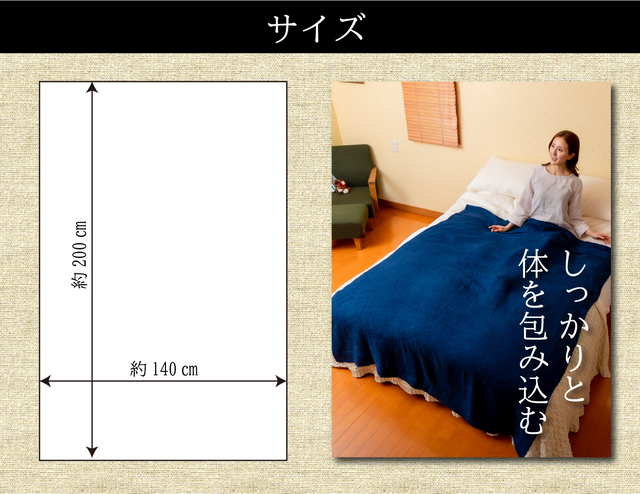 ずっしりと重みのあるケットは、重さによって体にしっかりと密着して包み込んでくれるでしょう。