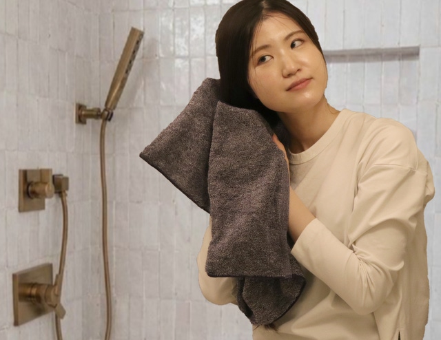 - これ一枚でヘアドライの時短に!8倍の吸水力で、生活をより快適に!