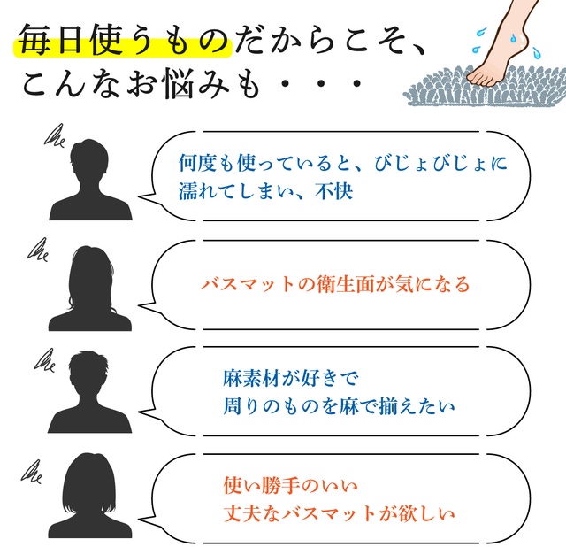 ・タイトル:【速乾×吸水×抗菌】今こそ『バスマットこだわり宣言』麻100%十二重ねバスマット