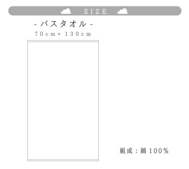雲のような至福の触り心地をたくさん実感していただくため、通常のバスタオルよりも大きめサイズに作りました。是非贅沢なバスタイムをお楽しみください!