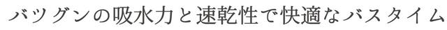 毎日頑張るお肌はとても愛おしいものだから、少しでも快適なバスタイムをお届けしたい。毎日のバスタイムをより快適にする、吸水力と肌触りにこだわったバスタオルができました。