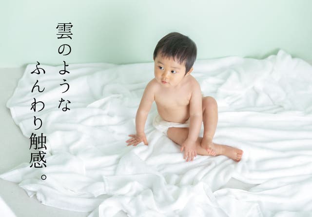 細い糸を特殊加工し、高密度できめ細かく織っているのでとてもエアリーで雲のようなふんわり感が実現しました!