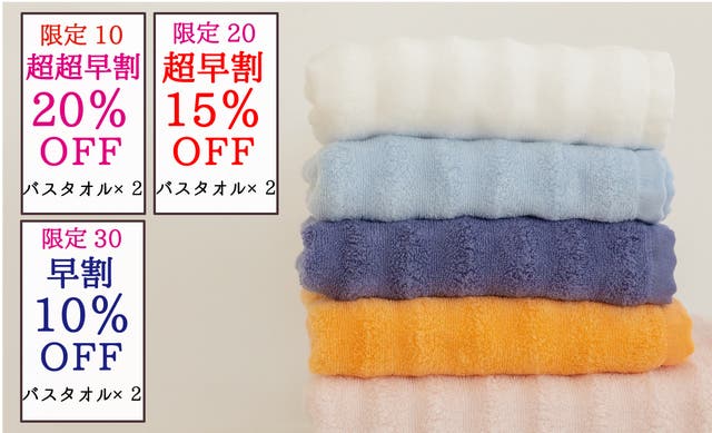 【超超早割】ウェーブパイルバスタオル2枚セット