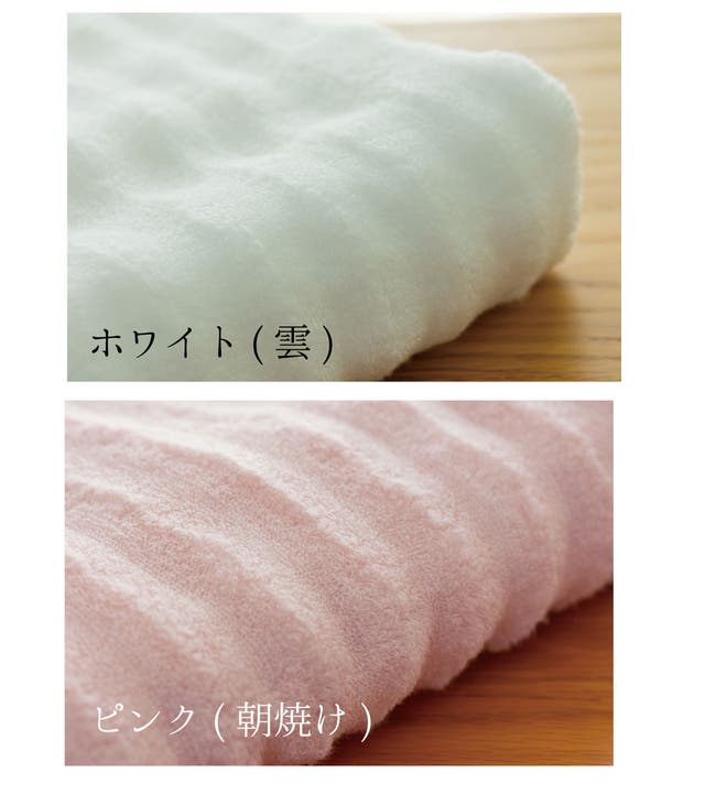 雲のようにふわっと波打ったウェーブパイル製法で仕上げています。お肌に触れる接地面積が増えるので、水分をすぐに吸収します!!