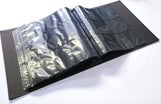 リフィルは出し入れしやすい両面ポケットにしました。リフィルが両面ポケットになったので背景が映える黒(マット)にしました。リフィルポケットサイズは一般的なトレカサイズ63×88mm(ポケモンカードゲームやワンピースカードゲームなど)が収納できるのは当然として、キャラクタースリーブも保存できるサイズにします。
